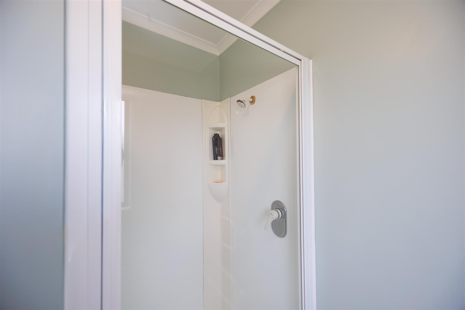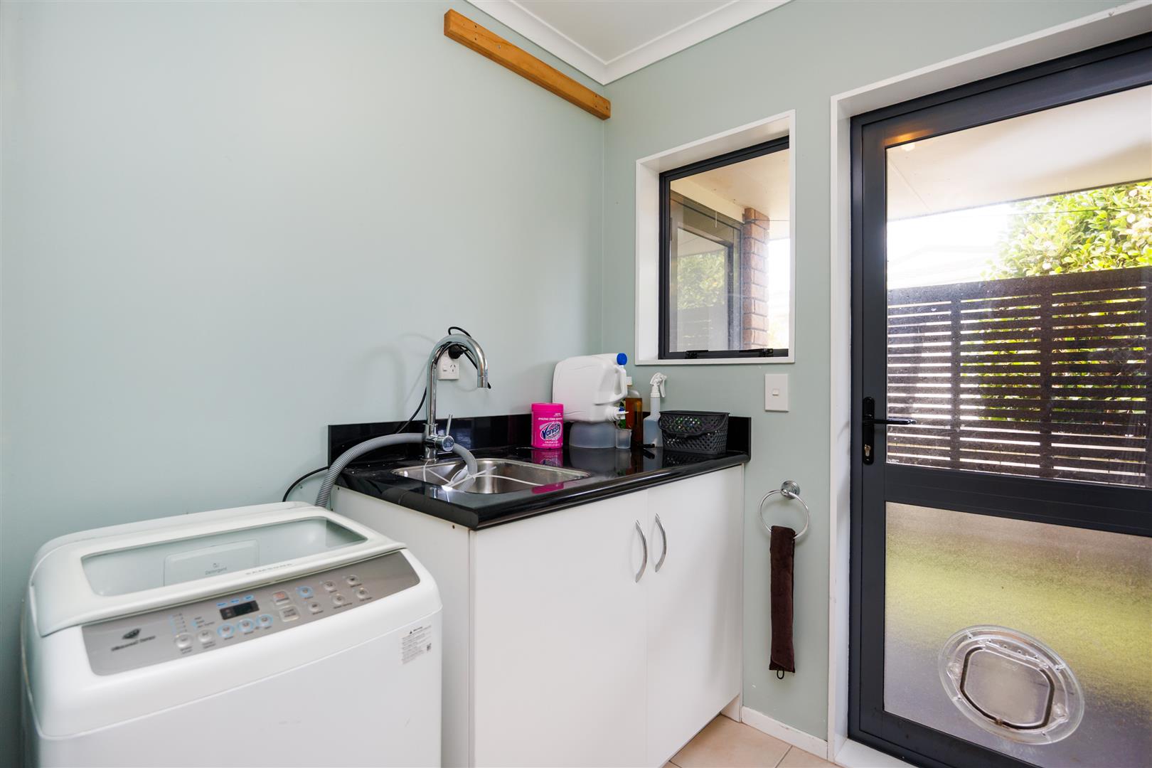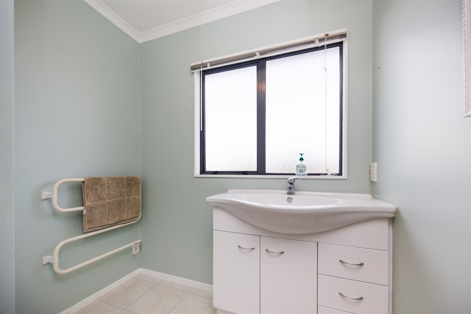 The primary suite features a tiled ensuite with both bath and shower cubicle. Down the hallway is a separate toilet area and family bathroom by the separate laundry area that accesses the partly covered West-facing paved area.