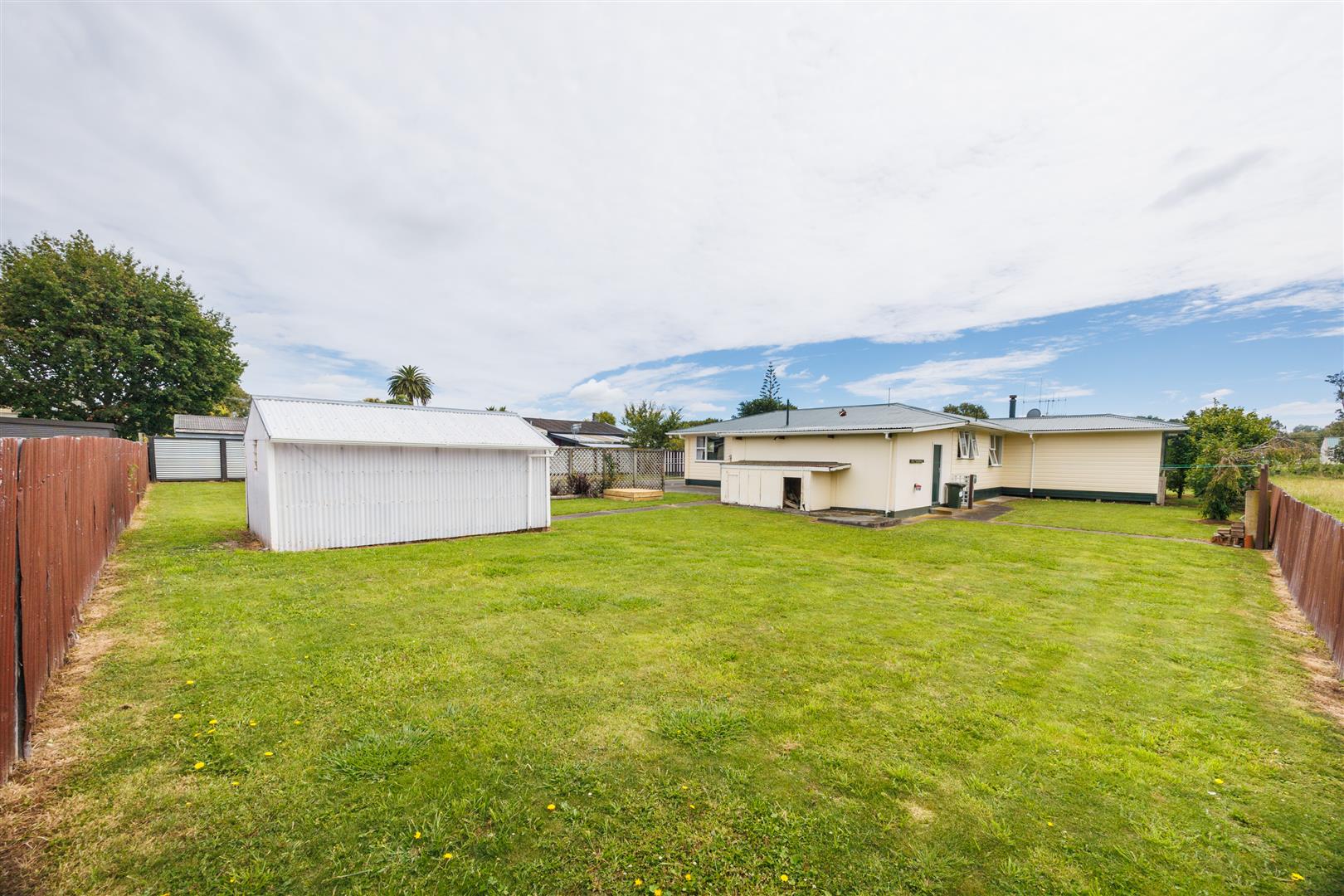 Standalone double garage plus the single garage connected to the house. The off-street parking is epic, so many vehicles can be accommodated. You can hear the country sounds, and enjoy watching the animals over the fence. Good fenced section ideal for children and pets to run around.