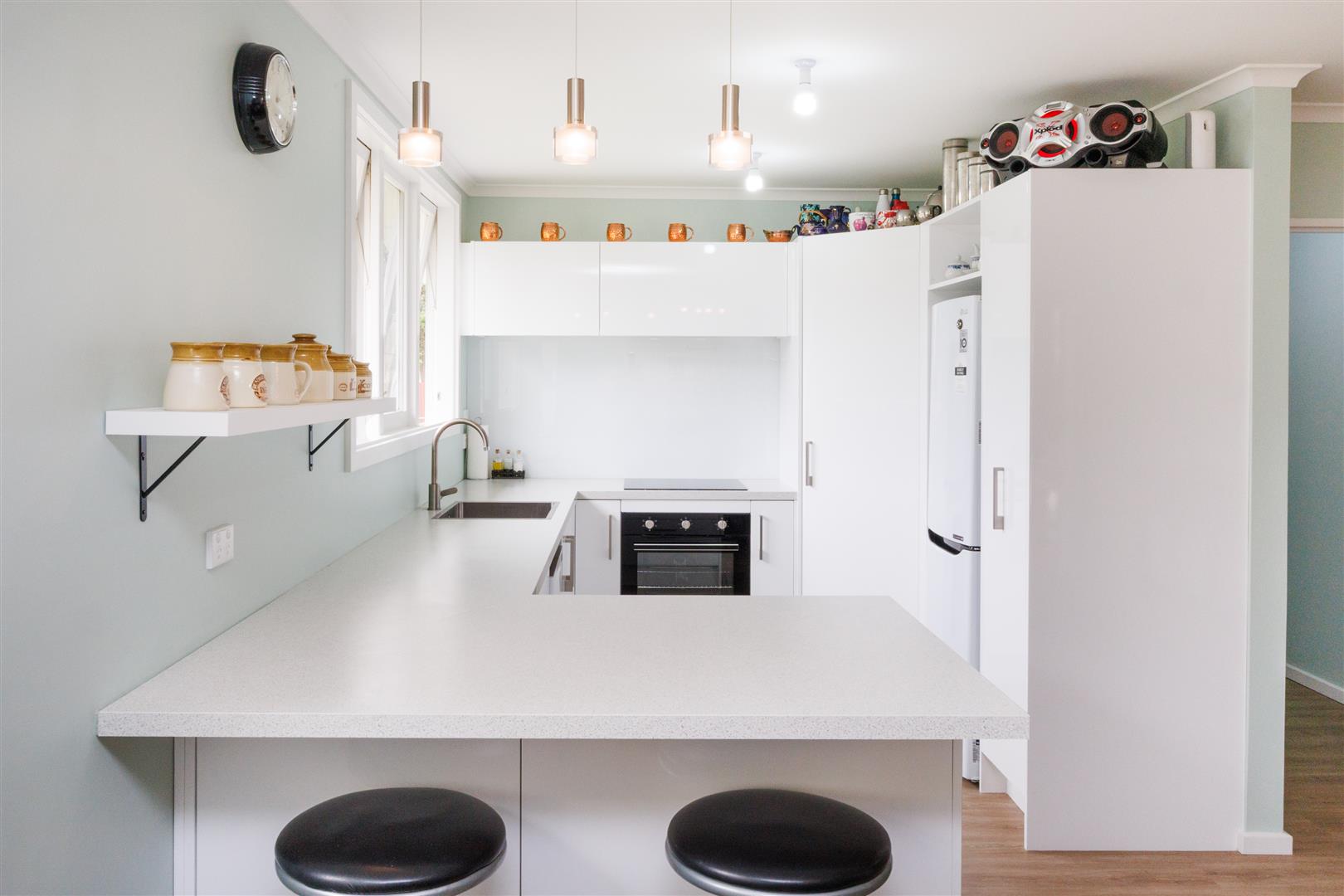 As the day begins before work, the occupants in the four bedrooms can meet for a quick breakfast in the modern kitchen area that has loads of bench space and double and single pantries. This is an open plan area featuring spacious dining that flows through to the living room which is heated by a free-standing woodburner.