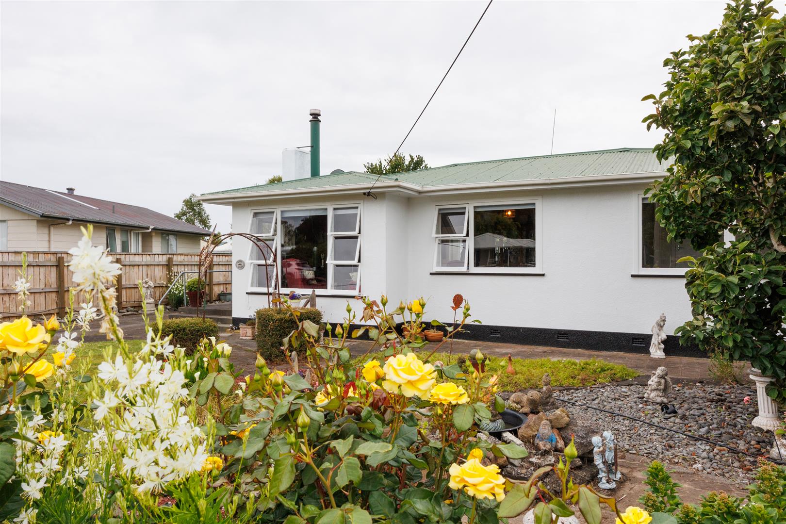 The modern kitchen features a breakfast bar and has the spaciousness for your large dining table. It's light and sunny. The separate living room has been extended and again, gives you more living space. There are two good sized bedrooms and a small bedroom with access to the outside. Separate laundry, bathroom/toilet combined. The convenience of a heat pump is great, ceiling and underfloor insulation plus woodburner. There is an electric hot water cylinder of 180 litres.