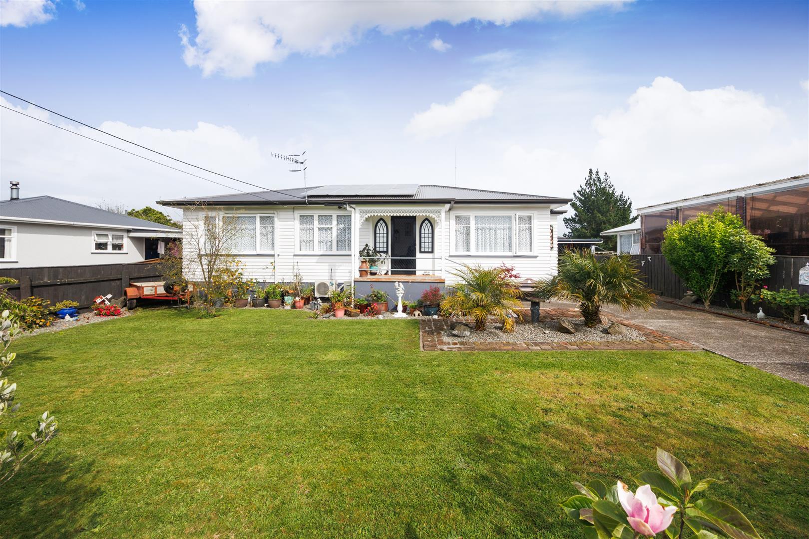 The very well maintained 1956 110 m2 home has been afforded a new Colorsteel roof which includes the garage too, and features 8 solar panels, plus many upgrades such as house having been rewired, insulation top and bottom, hot water cylinder, stove and heat pumps replaced to name a few.